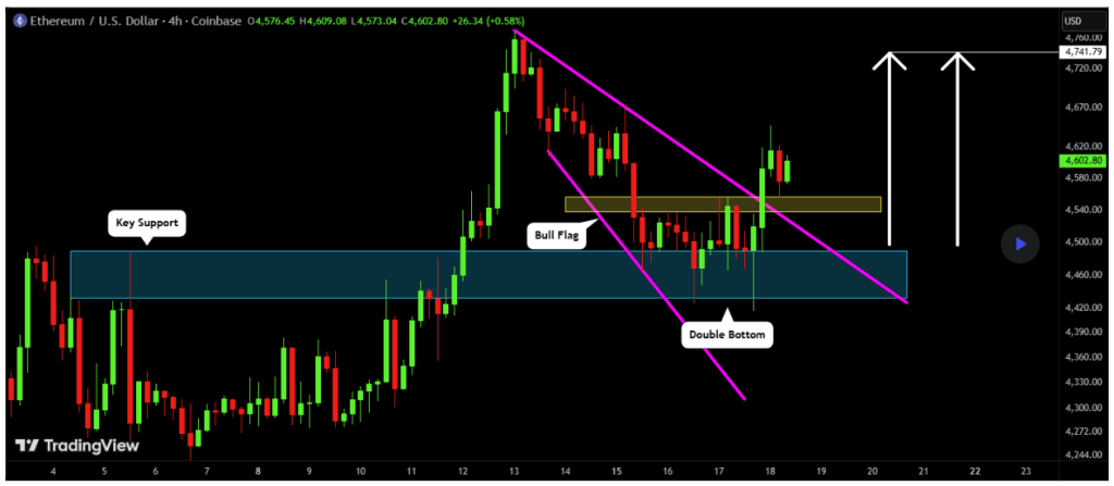 He identified a clear double bottom pattern that formed early last week, which was followed by a breakout from a falling wedge formation by Friday’s close. Based on these developments, VasilyTrader set his next price target at no less than $4,741.